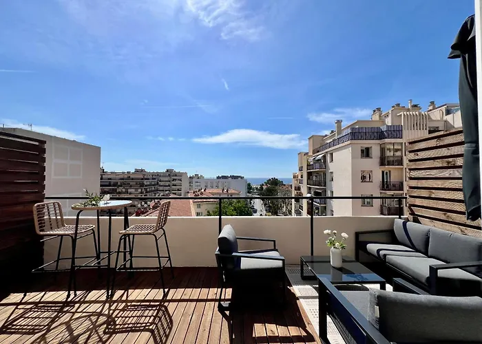 41m²のTheNiceTerraceアパートは国際素朴派芸術美術館から徒歩で約25分で、プロムナード デ アングレから3.2キロメートル離れた所の場所にあります。
